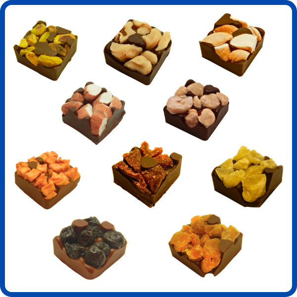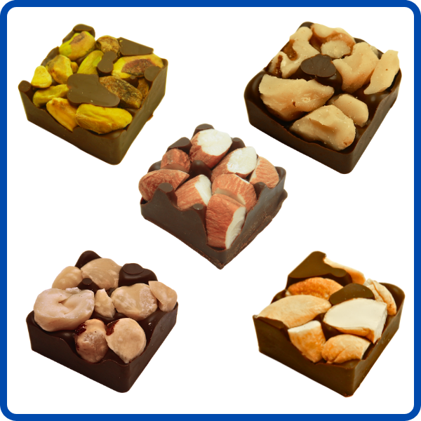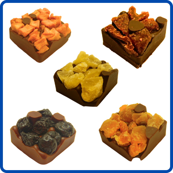 All confections are enrobed in premium Belgian dark chocolate - All Natural. Nothing Artificial.